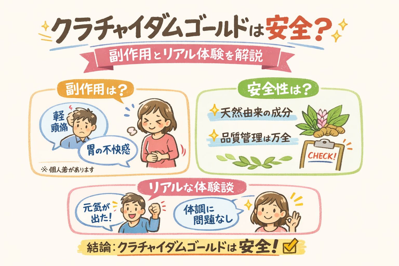 👉 結論:基本的には安全だが「合わない人はいる」サプリです